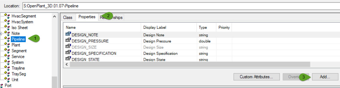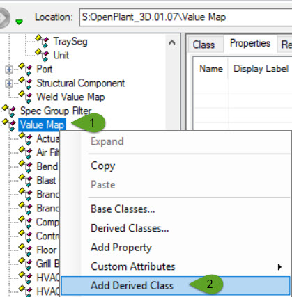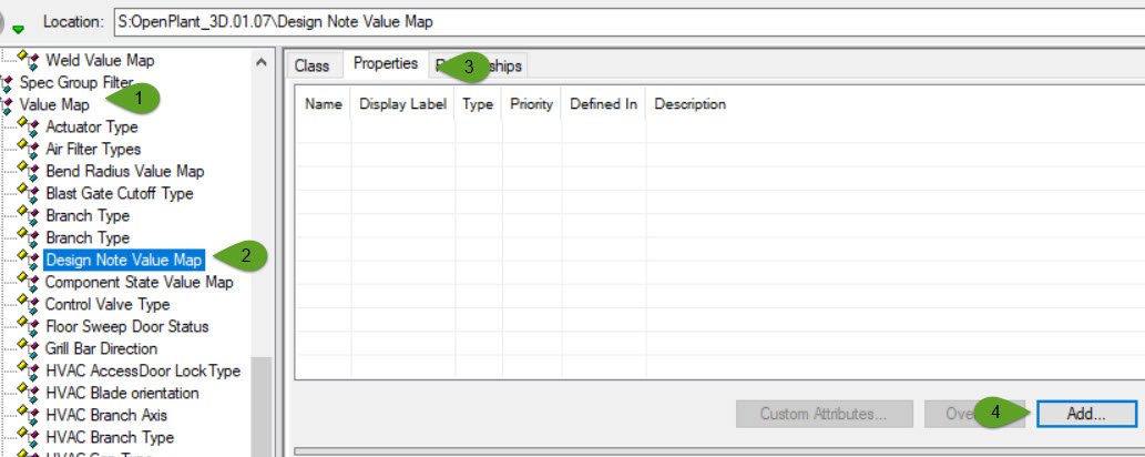 In OpenPlant Modeler, user wants to define drop down option for Pipeline properties using Value Map option.