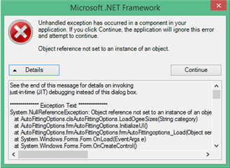This error indicates that the AutoFittingOptions.xml file is from a previous release. Since Update 7 is expecting an Ogee settings group that does not exist when using a previous version of this file, it cannot properly generate the UI element and therefore causes a .NET Framework error. Copy these two files from the closest equivalent Update 7 dataset based on your region, and add them to the applicable locations in your custom configuration.