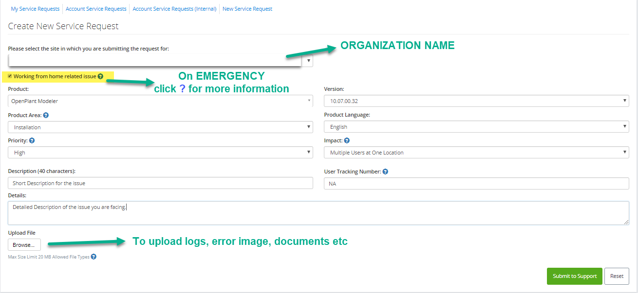 - Upon clicking on New Service Request, it will redirect to the below page.