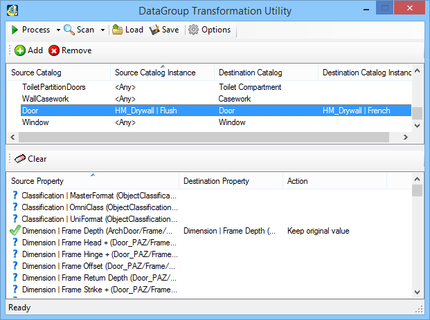 If models contain Catalog Items or Parts that are not present in the new dataset, the DataGroup Transformation Utility can be used to missing custom properties to delivered properties, and the Part utilities can be used to verify and where necessary remap parts to elements (help: DataGroup Transformation Utility):