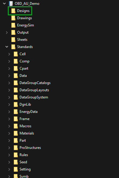 For example, in the example WorkSet CFG the default folder for design files is called 'Designs':