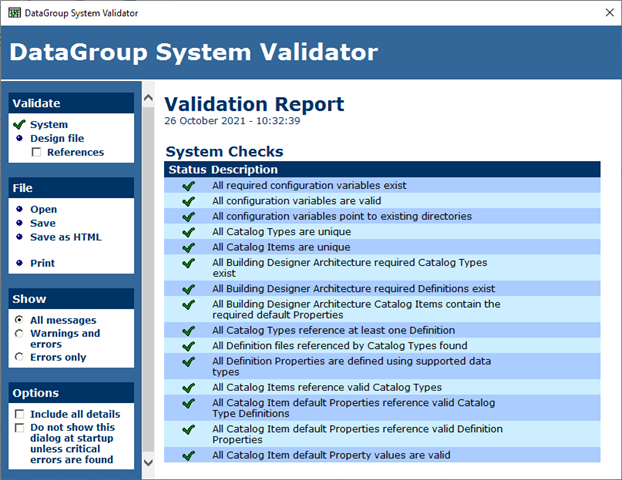 An error free report at this point will confirm that the DataGroup Catalog is valid prior to the addition of custom content.