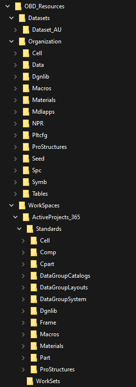 Organization: Unless configured otherwise the Organization subfolders contain shared platform or ProStructures content directed to by Standards.cfg and some ProStructures CFG files. Any content here will be available to all users unless configured otherwise. There are no other OpenBuildings specific folders. | |
