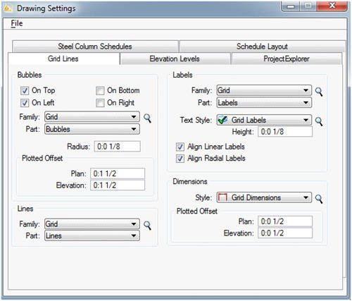 The location of the grid bubbles can be adjusted using the Grid Lines tab of the Drawing Settings dialog box.