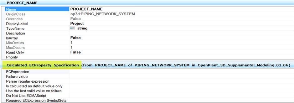 This article will provide the steps to populate project name on an EC Property which can be further used to include in pipeline, iso-sheet tagging. In this example, we will add this information on a property in PIPING_NETWORK_SYSTEM class.