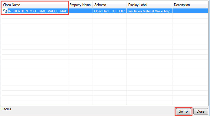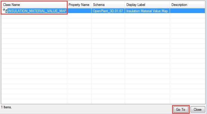 - Select the “INSULATION_MATERIAL_VALUE_MAP” class name and press “Go to “