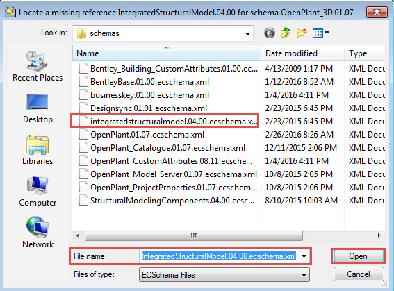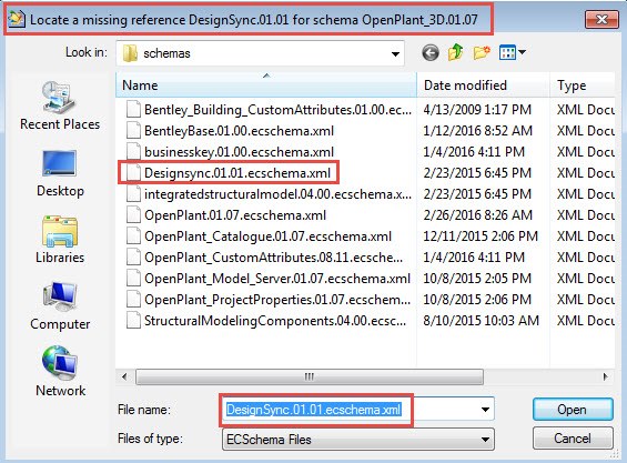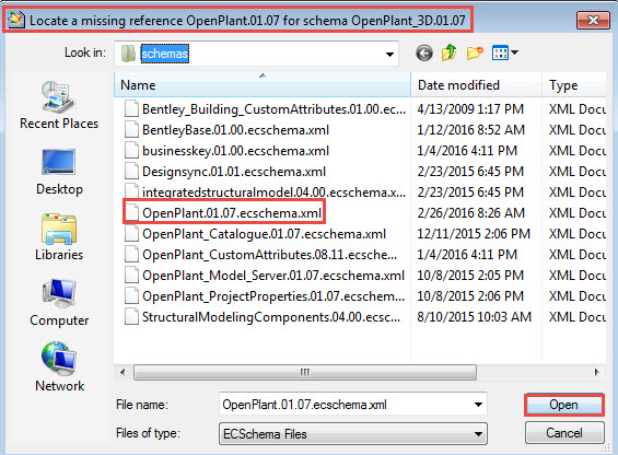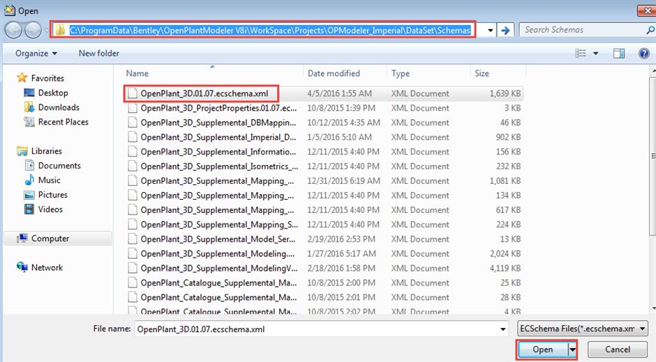 - Open “OpenPlant_3D.01.07.ecschema.xml” schema say for “OPModeler_Imperial” from workspace project schema folder.