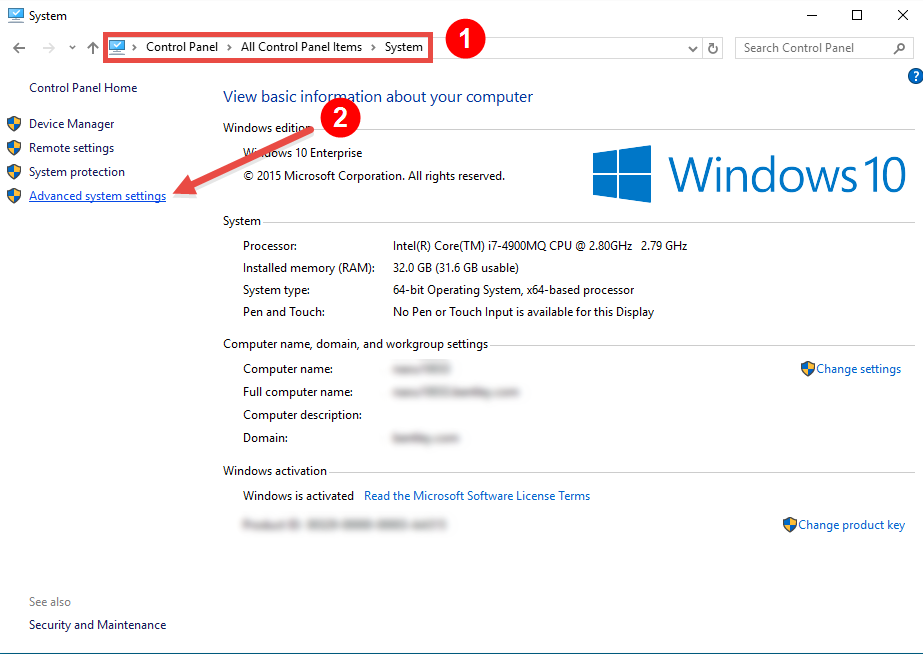 2. Select Advanced system settings