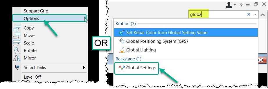 1. Open the Global Settings or Options by holding the right mouse button in the View window and then click on the Options. Or search ‘Global Settings’ in the Search Ribbon and click on it to open it.