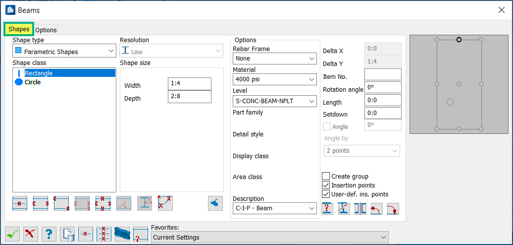This section contains the wikis related to the Shapes tab of Beams tool in ProStructures (ProConcrete) CONNECT Edition.
