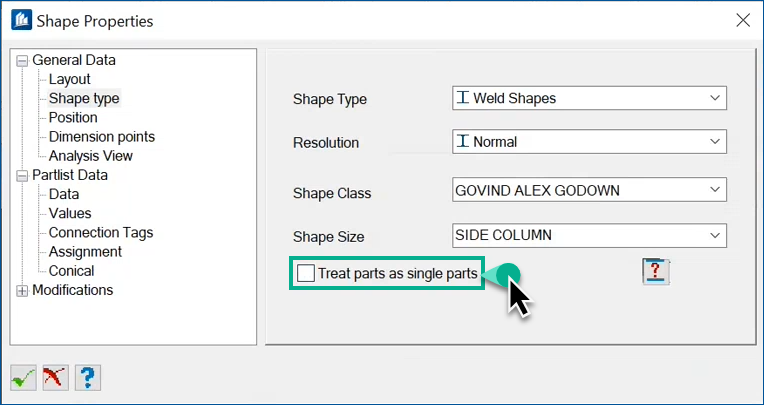 2. Go to the General Data > Shape Type and turn off the 'Treat parts as single parts’.