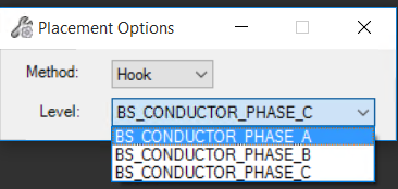 - Notice the Phase Level in the Placement Options dialog corresponds with the selected phase in the Properties Control by default. You can override the level if desired by selecting a different level from the picklist.