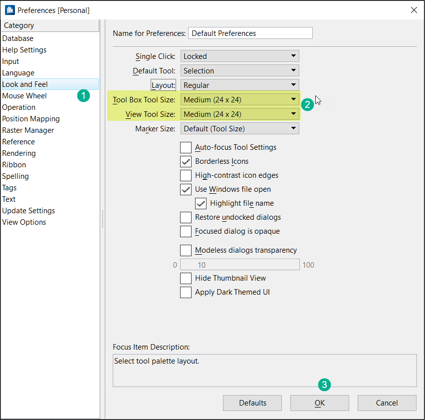2. Under Preferences, go to the ‘Lock and Wheel’ section and set the size of the Toolbox size to Medium or large