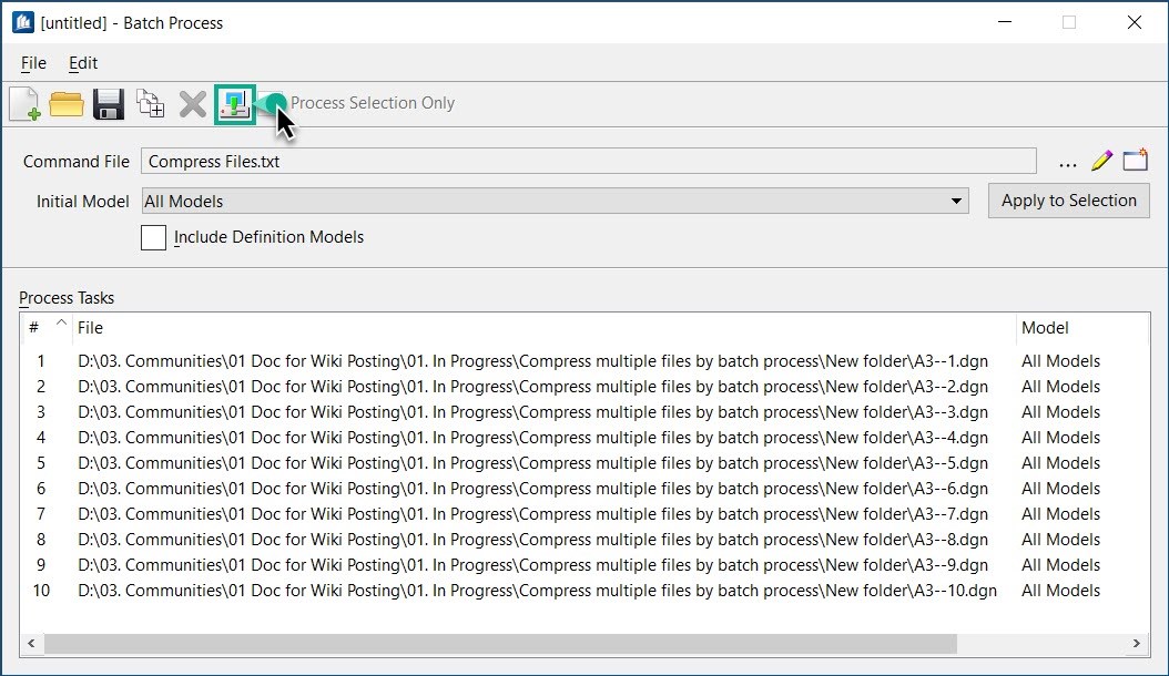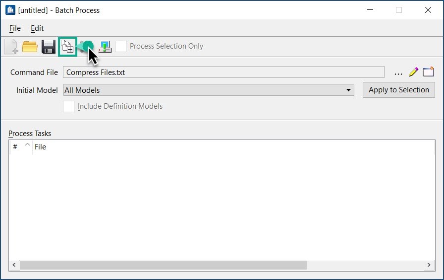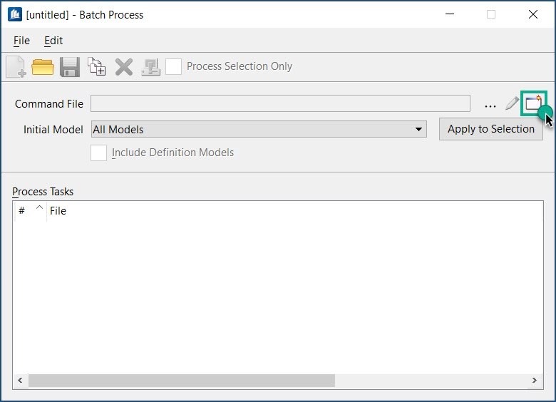 2. To create a new command file for the job click the 'Create a New Command File' icon on the right of the Batch Process dialog.