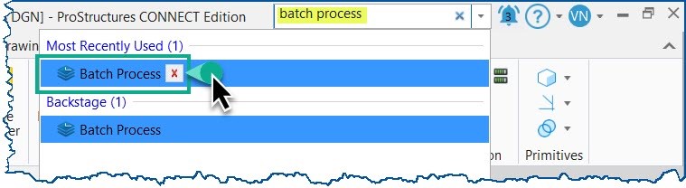 1. Type ‘batch process’ in the Search Ribbon and left click on the Batch Process.