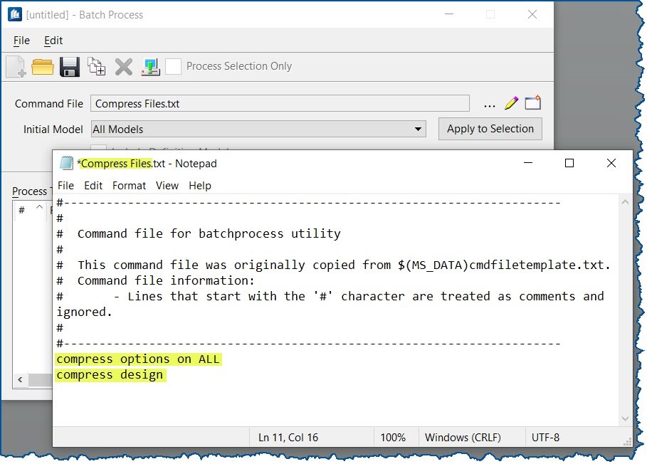 4. A command file gets opened in the notepad with the file name. Here, add the below line to compress the files with all compress option