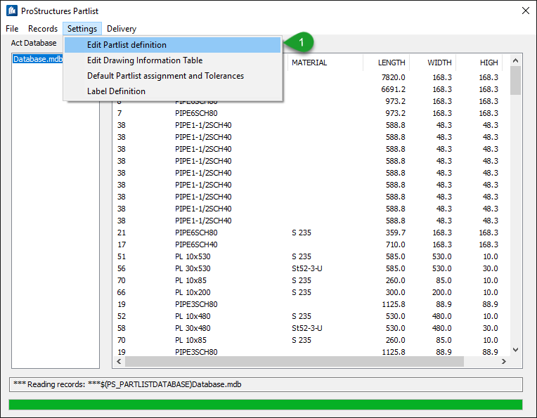 2. Click on Open and the file will be opened in Partlist Editor dialog
