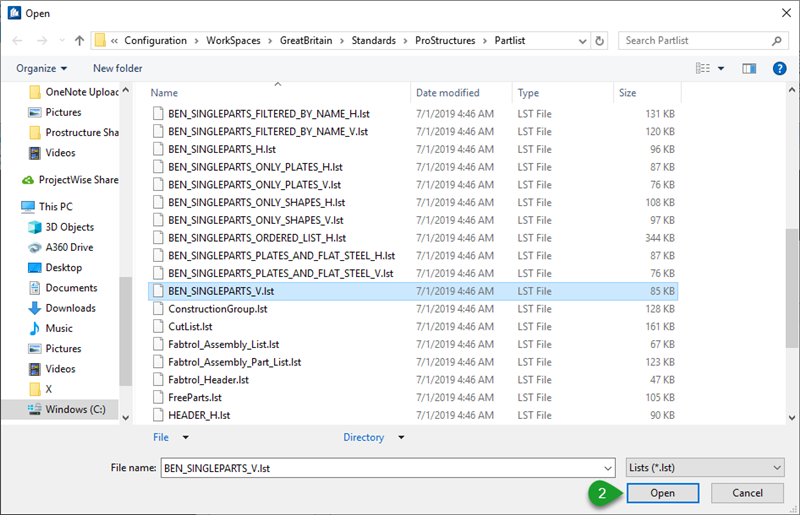 1. In ProStructures Partlist dialog, go to Settings > Edit Partlist definition, which will allow you to select your lst file.