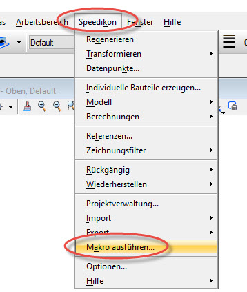 Starten Sie Speedikon und öffnen Sie einen beliebigen Grundriss. Gehen Sie nun auf das Pulldown Menü Speedikon und Makro ausführen.