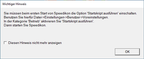 - Wenn Sie zum ersten Mal OpenBuildings Speedikon starten erscheint folgende Hinweismeldung: