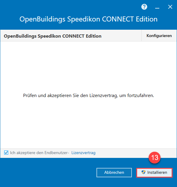 - Durch klicken auf Lizenzvertrag können Sie den Endbenutzer-Lizenzvertrag lesen. Bitte akzeptieren Sie den Endbenutzer-Lizenzvertrag indem Sie den Haken setzen.