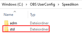 - Wenn Sie einen eigenen Speedikon Firmenstandard verwenden möchten, öffnen Sie den Ordner Speedikon im benutzerdefinierten Konfigurationsverzeichnis oder wenn dieses nicht definiert ist im bereitgestellten Konfigurationsverzeichnis. Erstellen Sie dort den Ordner std. Wenn nicht, machen Sie weiter mit Schritt 22.
