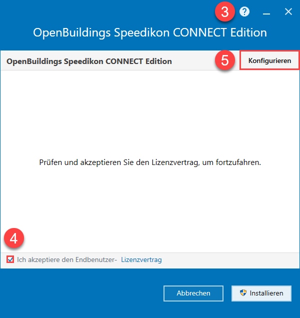 - Installieren Sie OpenBuildings Speedikon indem Sie auf Installieren klicken.