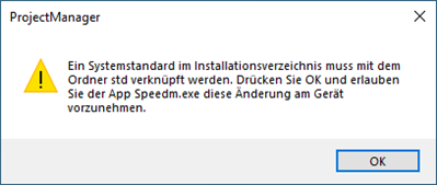 Beim ersten Start nach der Installation von OpenBuildings Speedikon erscheint eine Meldung, für deren Lösung Administratorenrechte erforderlich sind.