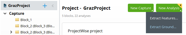 2) Select the project in the in the project tree, then select the “New Analysis” green button and choose the “Extract Ground…” entry.