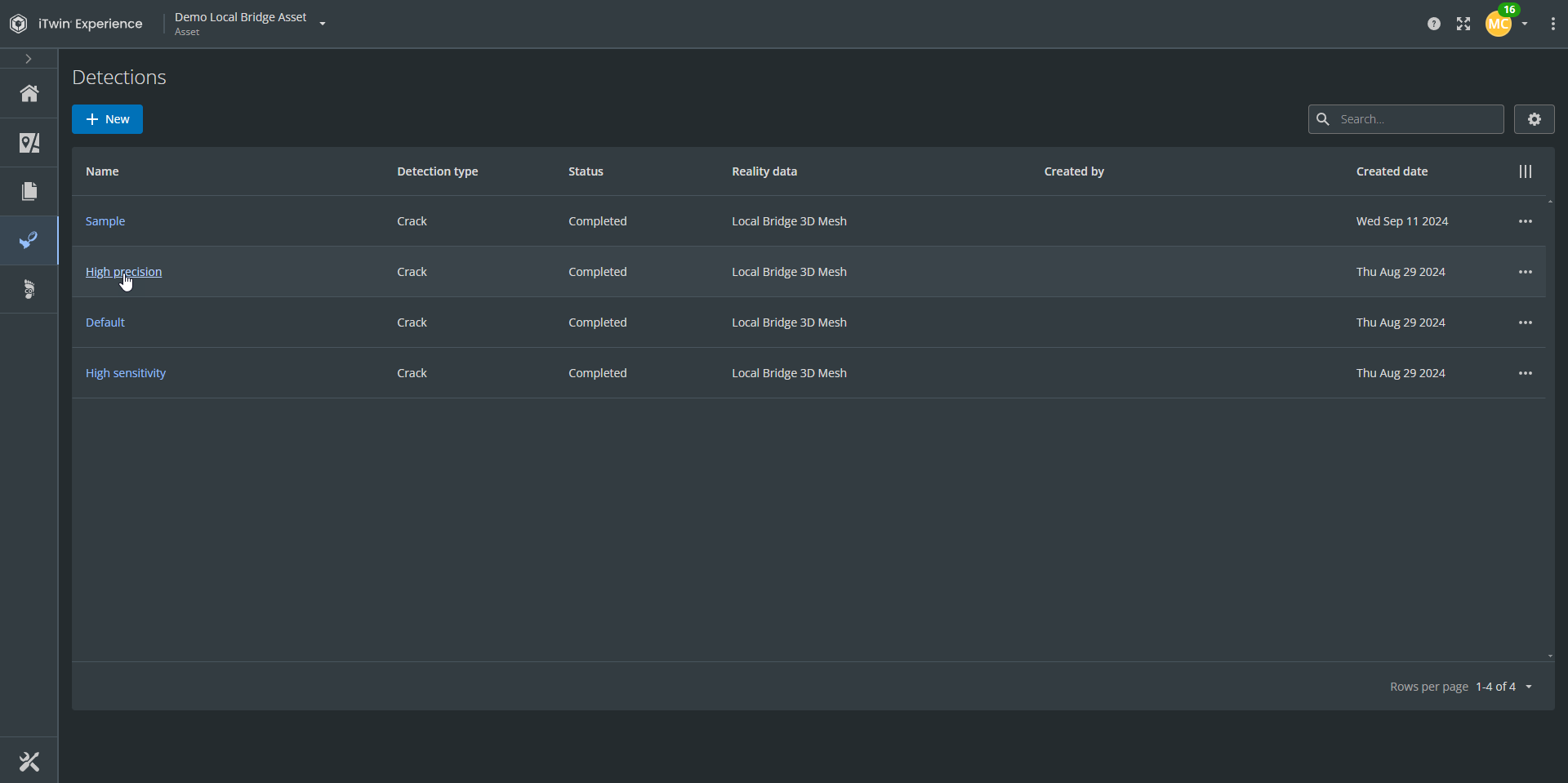 Once the AI/ML defect detection is completed, you can access the results by clicking on the appropriate run. If the detection fails, you cannot enter the AI Detection view.