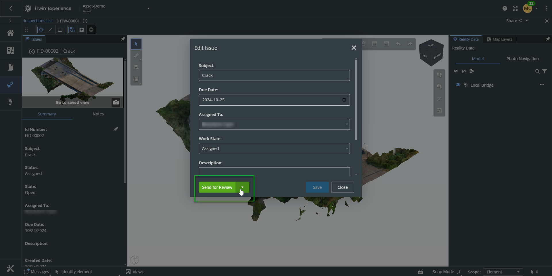 The next status is Send for Review. At any time you can always go back and send back the issue to its previous state. The color for the flag will change to yellow.