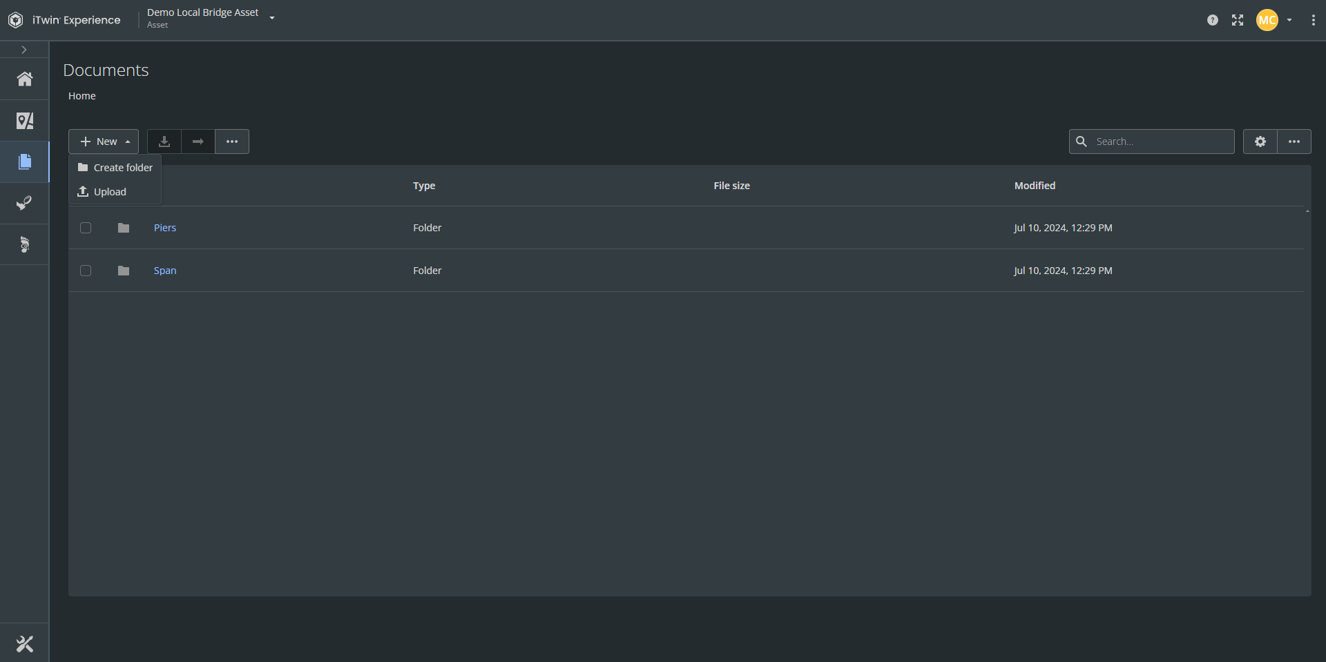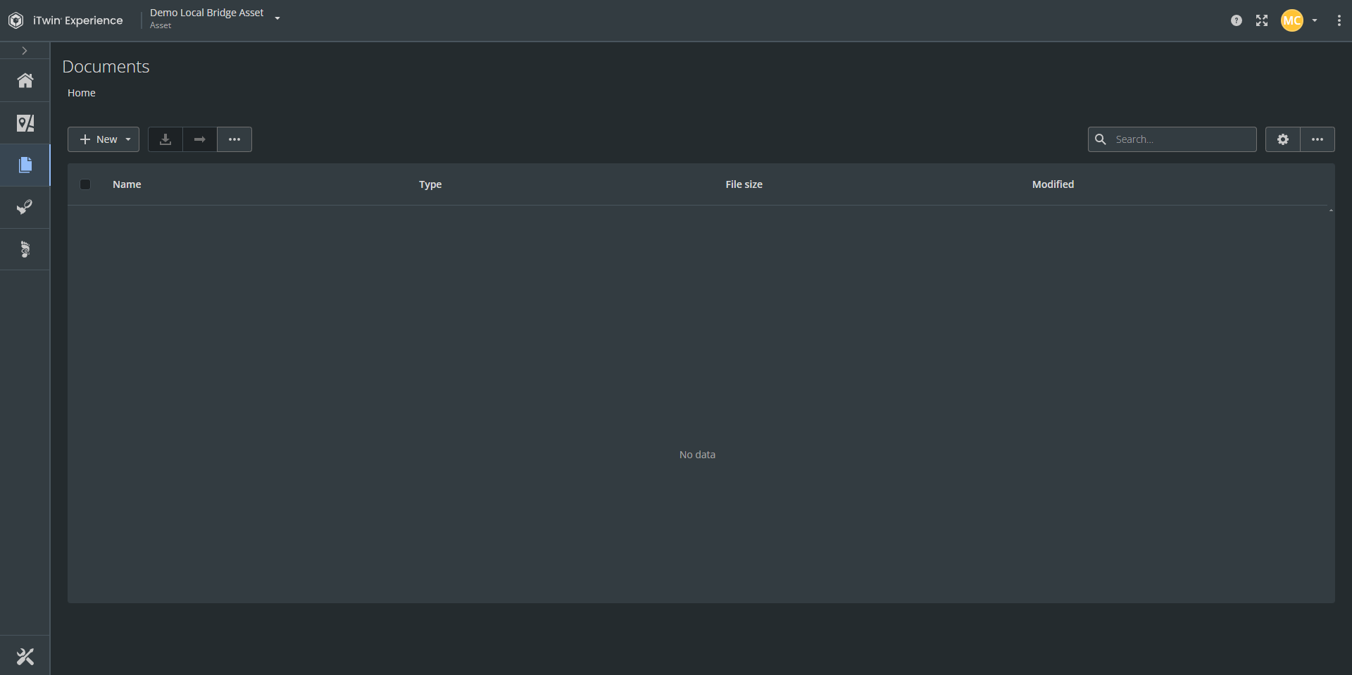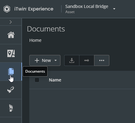 Click on the Documents tool to access the storage location for files associated with the iTwin.
