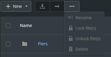 On the upper left side of the view, the usual action options can be done with the documents, such as, Rename, Lock file(s), Unlock file(s) and Delete.
