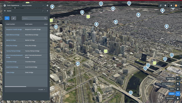 While the iTwin Experience provides a single-pane-of-glass of all your assets, the Portfolio is an organization-wide collection of digital twin data, with a spatial-first user experience. View your assets together with any Reality, BIM or GIS data, required by your users to complete their tasks.