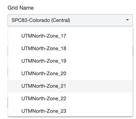 5. Grid Name- The Grid Name selection dropdown allows the user to select the cartesian coordinate system for the receiver data correction.