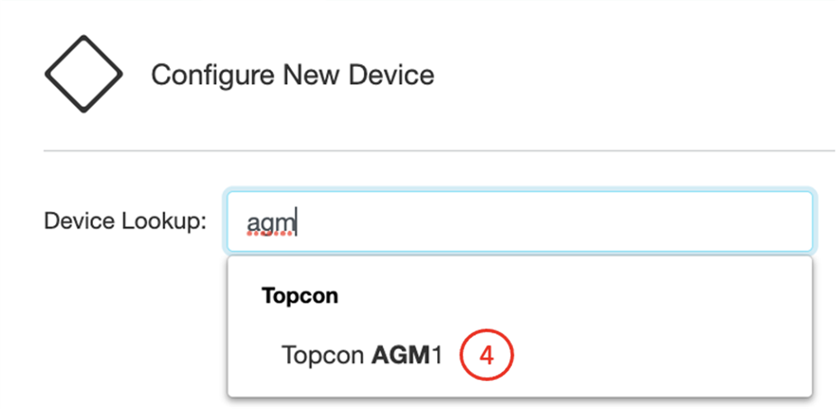 4. Begin by typing in "Topcon" or "AGM", and select the name Topcon AGM1 once it autocompletes in the search box.