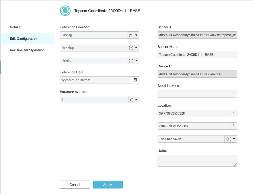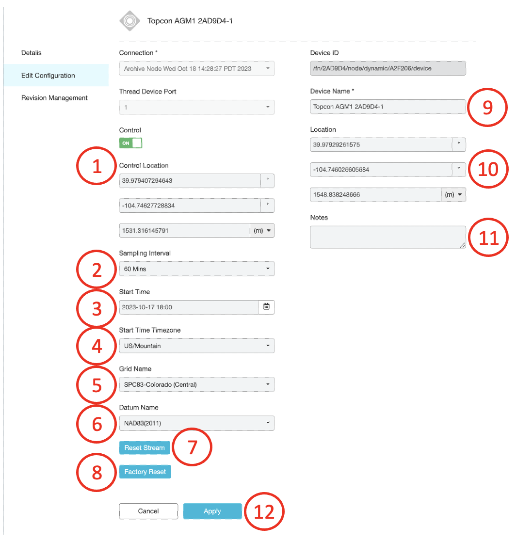 Once the Device connection process above is complete, the user will be navigated directly to the "Edit Configuration" page. The configuration of the GNSS receivers can be completed as they are added, or all receivers can be added to the project and then control receivers assigned. To determine which option is best for your setup, please read the Note section of the Control Toggle bullet below.