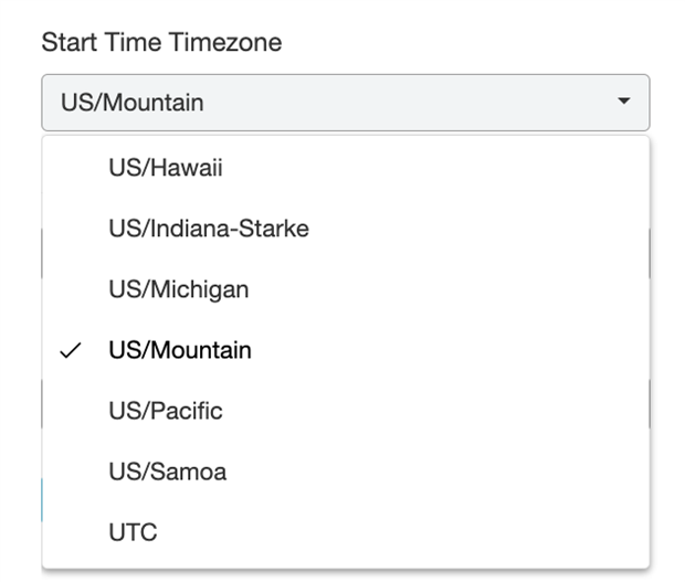 4. Start Time Timezone- The start time timezone dropdown adjusts the previously input start time to a different timezone.
