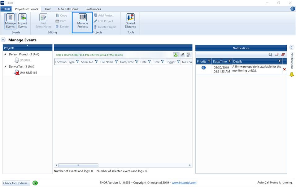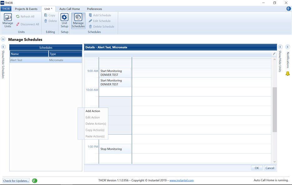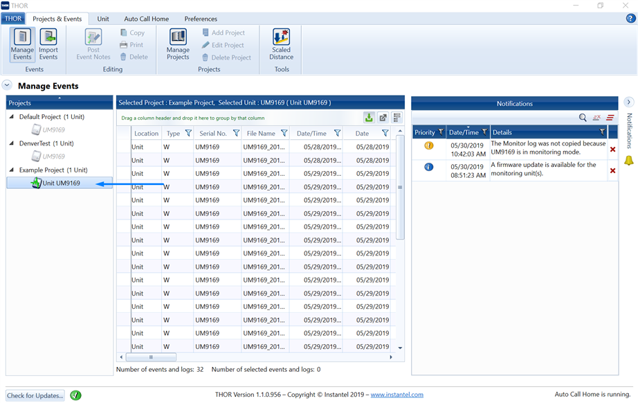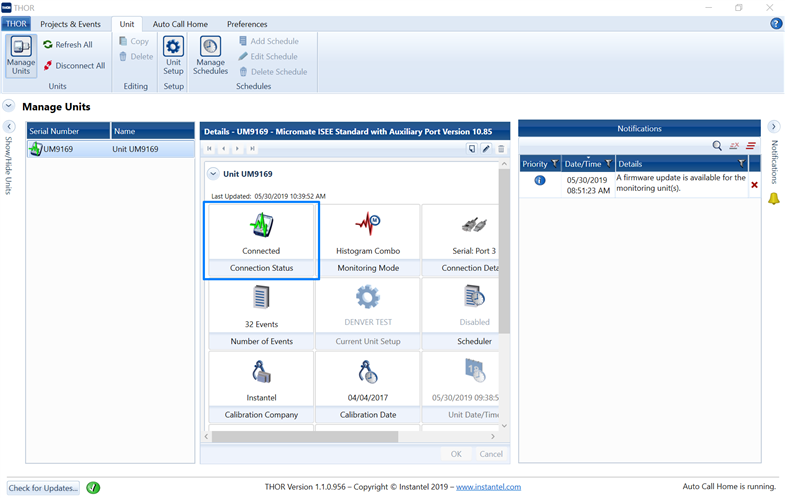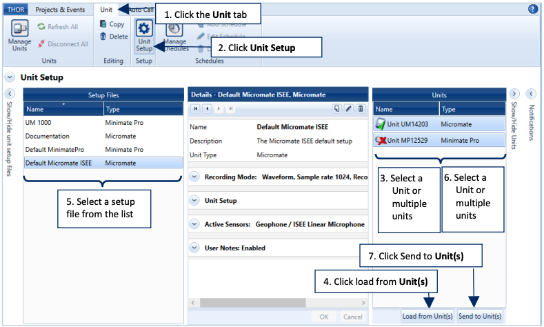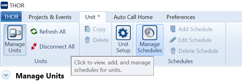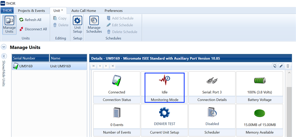 1. Once the geophone is setup the connection status will be displayed in THOR under the Unit tab > Manage Units: