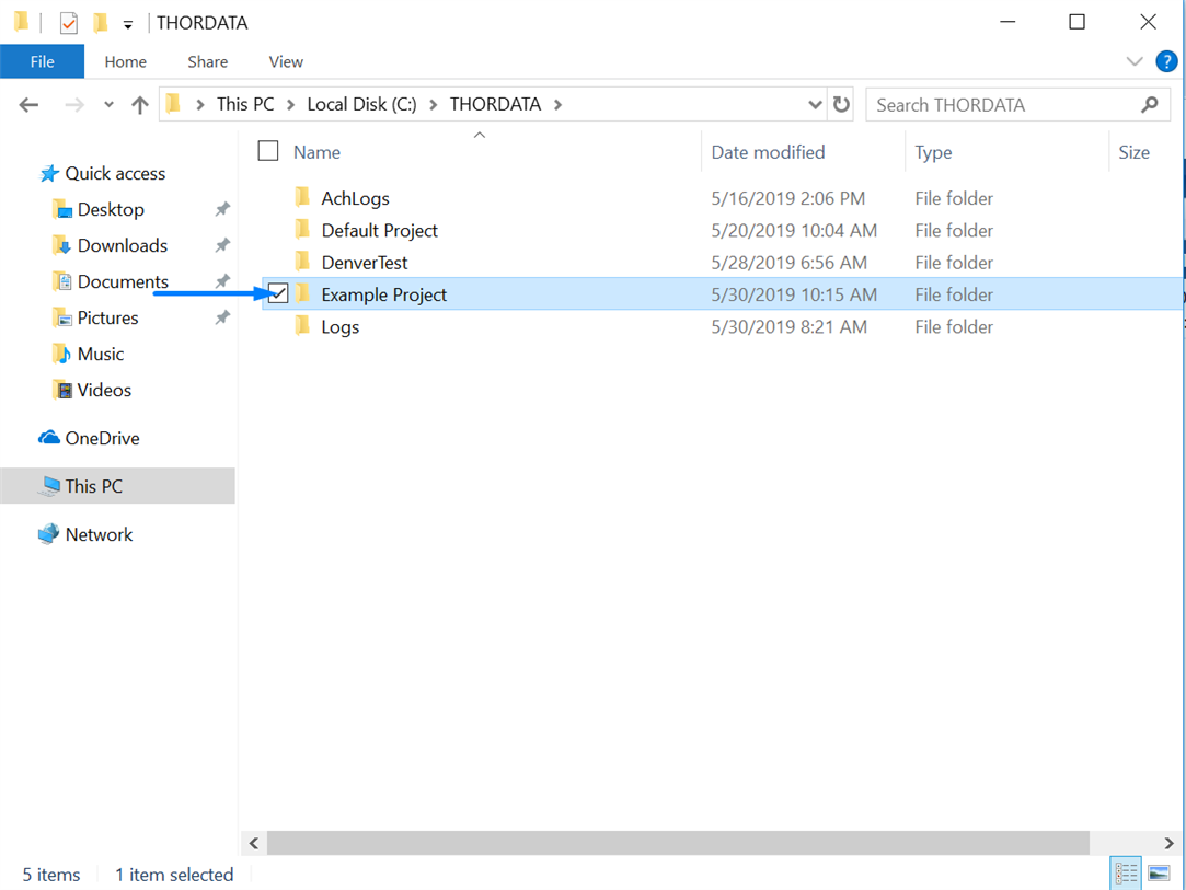 1. After completing the above steps you can navigate to the project folder and check its contents. First, go to the THORDATA directory.
