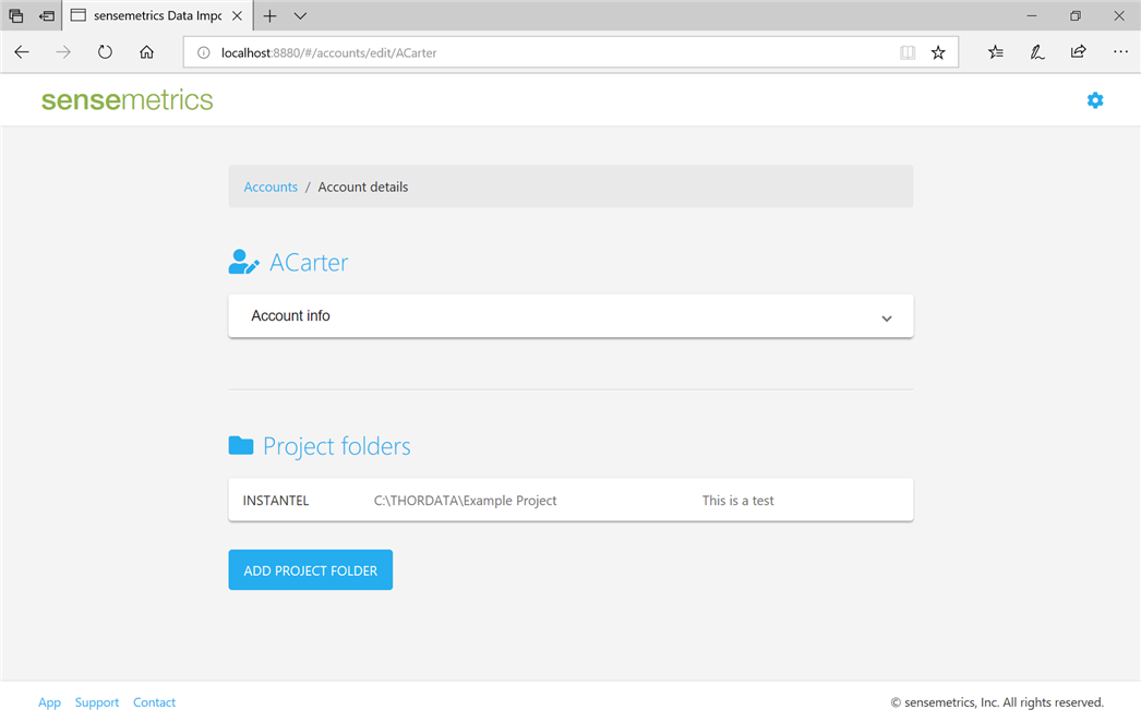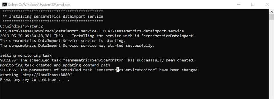 9. Click the to save the settings. When it's finished saving the project folder, your DataImport Service window should look like this: