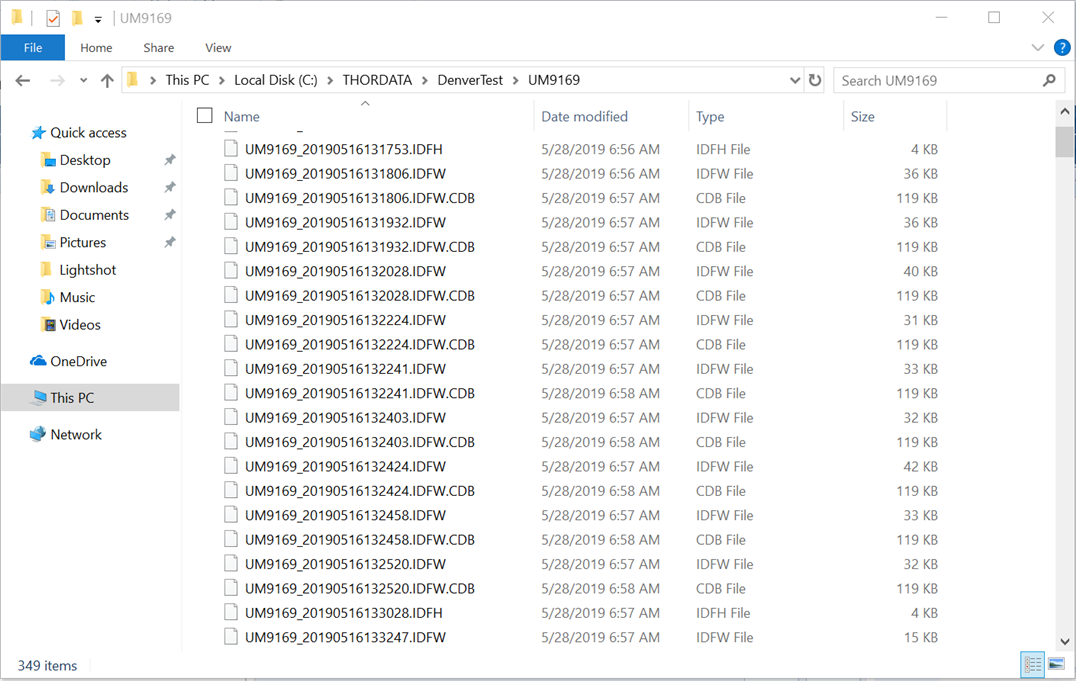 Note: If the Histogram Combo monitoring option was selected, there will be 2 file types - Waveform (IDFW) and Histogram (IDFH). The histogram shows when events occurred over time. The waveform provides detailed insight into the behavior of each event. Currently, only the histogram file is collected by App.