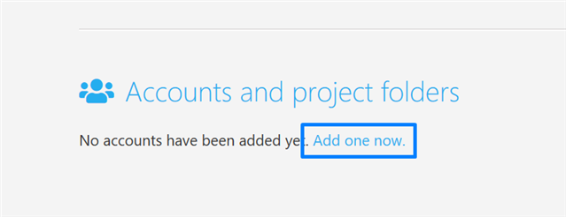 7. Next, you will need to create a project folder. To do so, click "Add one now":