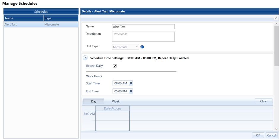 2. You can create either a daily or weekly schedule for the MicroMate to follow: