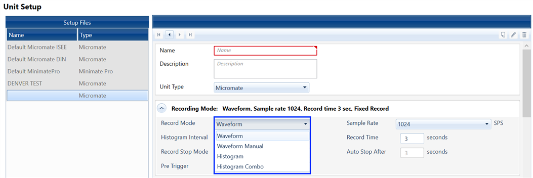 3. Configure the minimum thresholds for engaging waveform sampling OR load a pre-existing configuration file. The values used should be established by the user familiar with the project.