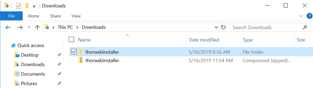3. When the file (thorwebinstaller.zip) finishes downloading, extract it.