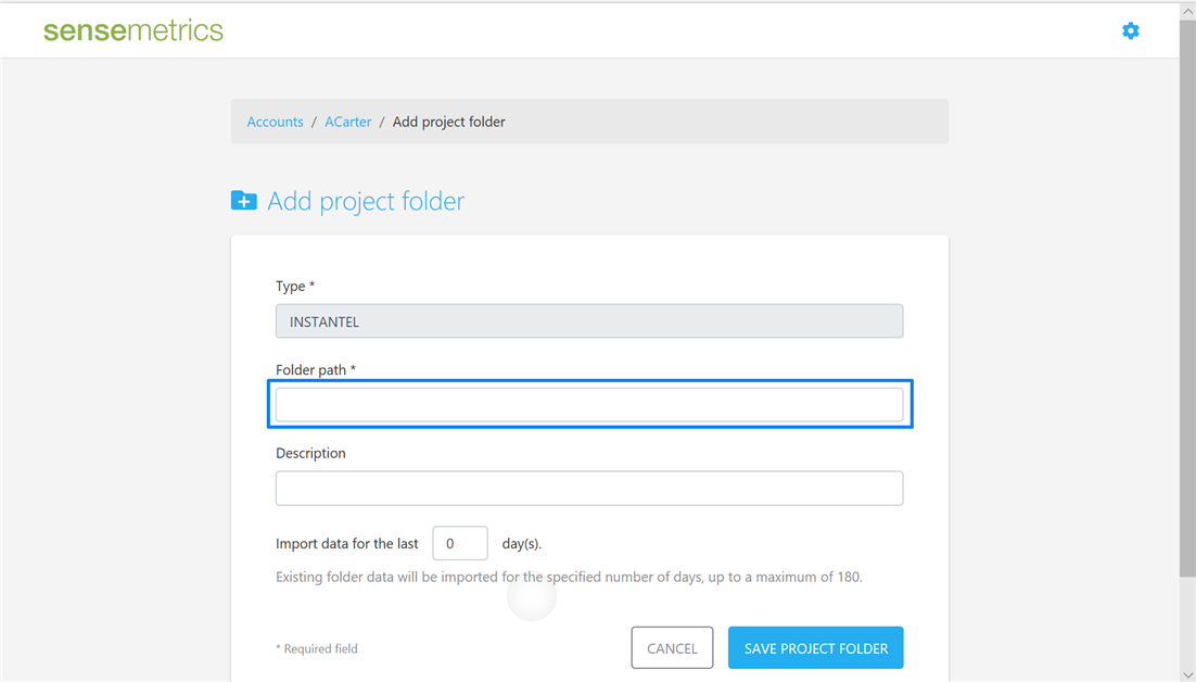 Note 2: You can enter a description for that project folder, but it is not required. If you want to import folder data, you can choose how many days worth of data you'd like to import.