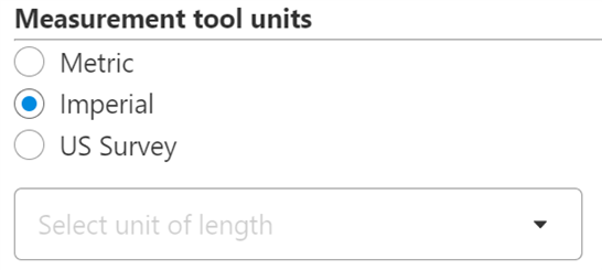 This setting allows the user to select the unit system to use in measurement tools. Choices are Metric, Imperial and US Survey.