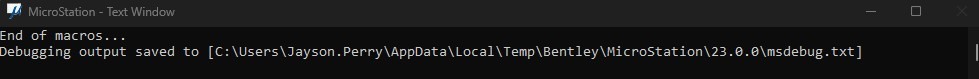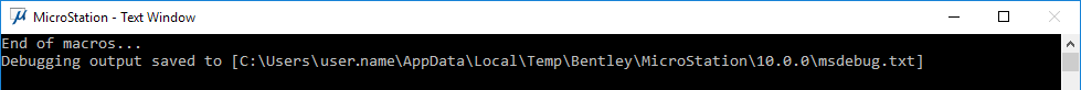 In MicroStation 2023, the debug file will be saved to C:\Users\<username>\AppData\Local\Temp\Bentley\MicroStation\23.0.0\msdebug.txt and will open in Notepad (the default application associated with the .txt file extension)