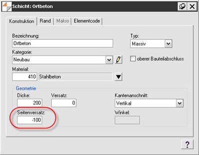 12. Geben Sie beim Seitenversatz der Schicht Ortbeton den Wert der Randstreifenbreite mit negativem Vorzeichen ein.